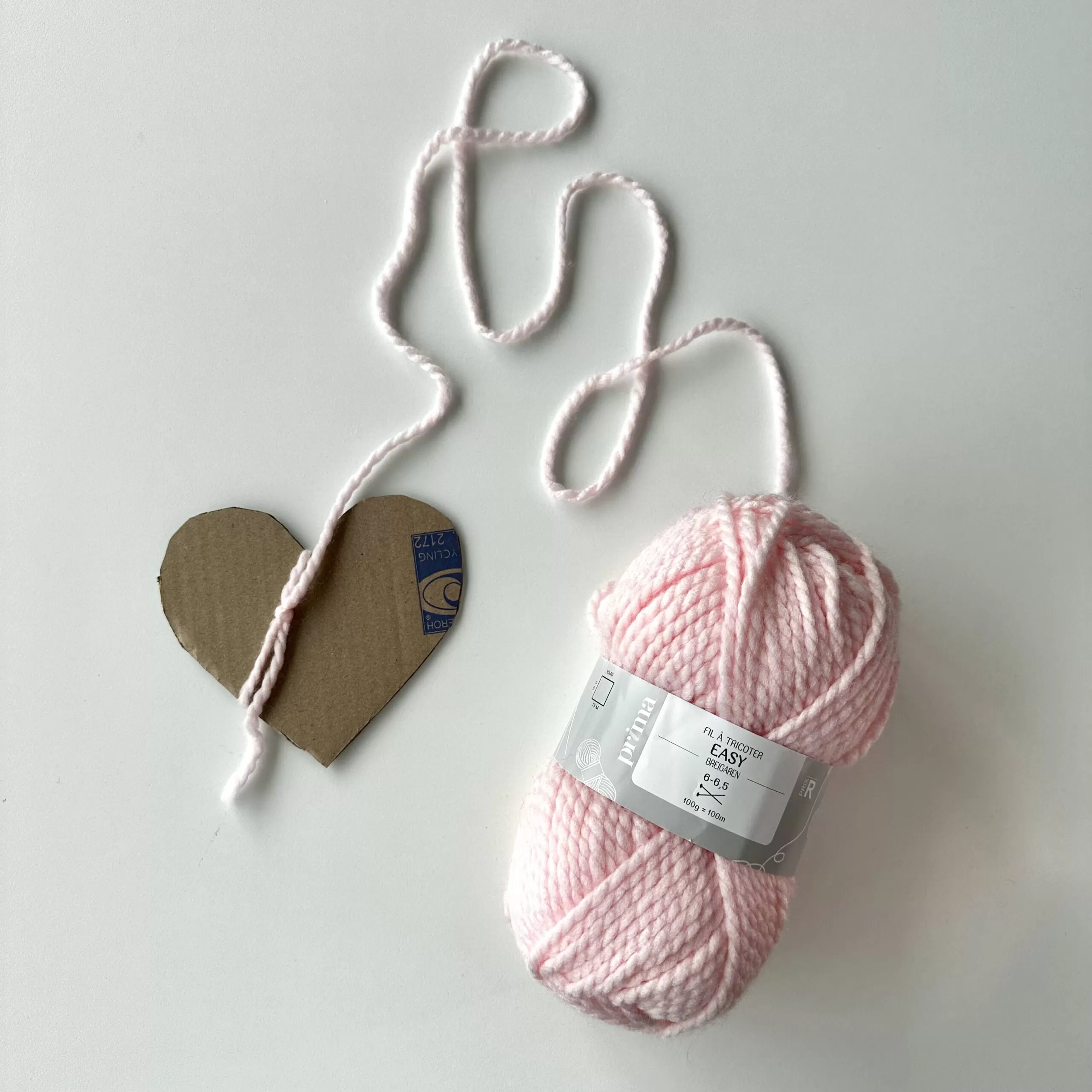 Prenez votre pelote de laine et nouez le fil autour du cœur.