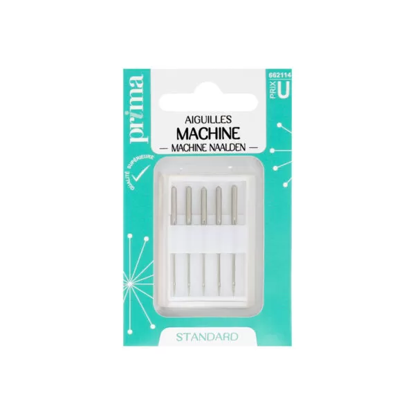 Choisissez votre aiguille en fonction de l’épaisseur de votre tissu. Plus le numéro est petit, plus l’aiguille est fine. Tailles 70, 80, 90 et 100