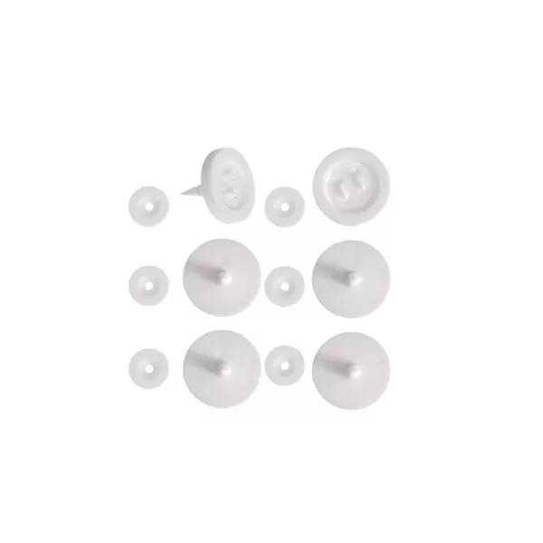 Les boutons sans couture blanc Prima Mercerie ne nécessitent ni fil ni aiguille, ces boutons se posent en quelques secondes par simple pression.