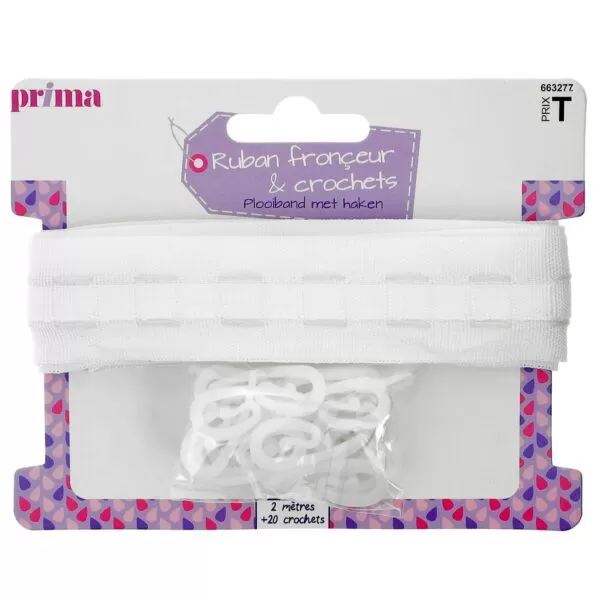 Le ruban fronceur et ses crochets Prima Mercerie sont parfaits pour la conception de vos rideaux. Ils vous permettent de bénéficier d’un fronçage régulier pour assurer une finition optimale.