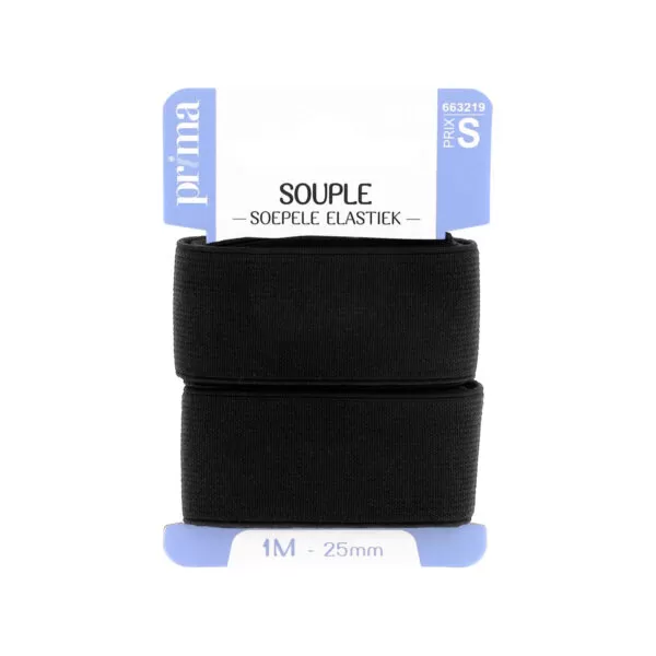 Cet élastique souple noir mesure 1 mètre de long par 25 mm de large. Cet élastique existe en version 20, 25 et 30 mm de large.
