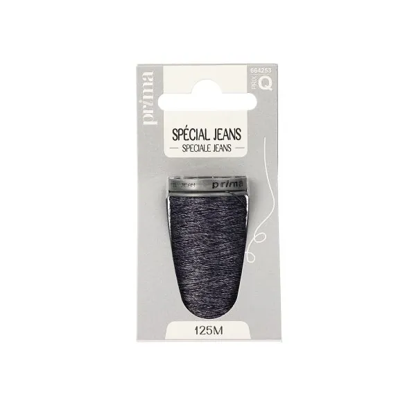Cette bobine de fil de 125m est idéale pour la couture sur jean, sa couleur lui permet de se fondra parfaitement dans le tissu. Grâce à sa composition de polyester et coton, le fil s’adapte facilement au tissus moyens et épais.