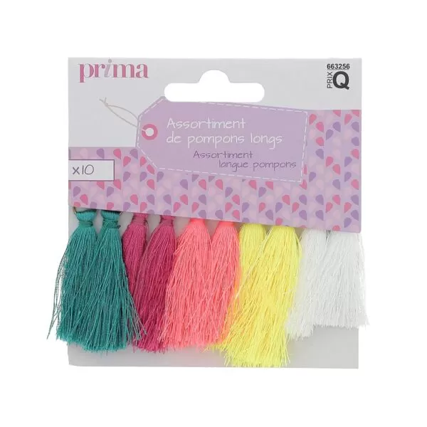 Le set de pompons Prima Mercerie est composé de 10 pompons longs colorés. À coudre, ils sont parfaits pour personnaliser vos accessoires, customiser vos vêtements, orner vos décorations ou même pour créer vos propres bijoux.