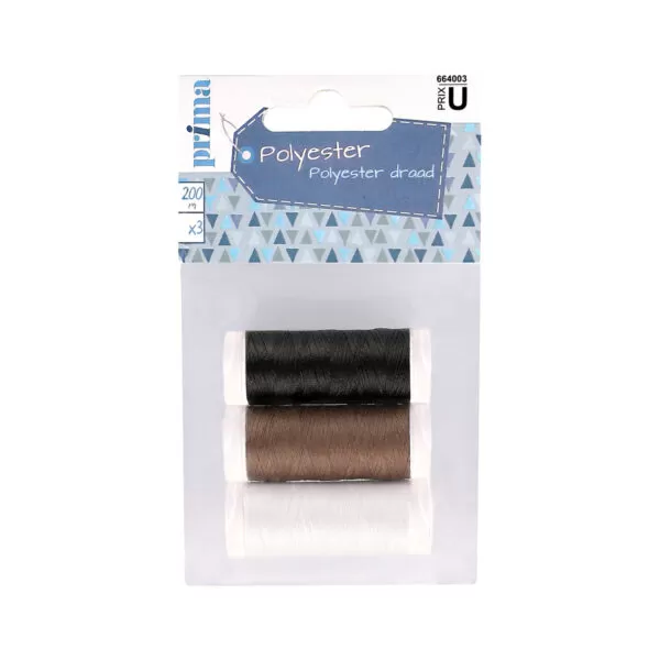 Le lot de 3 fils à coudre polyester propose les couleurs essentielles utilisées en couture telles que du fil noir, marron et blanc.
