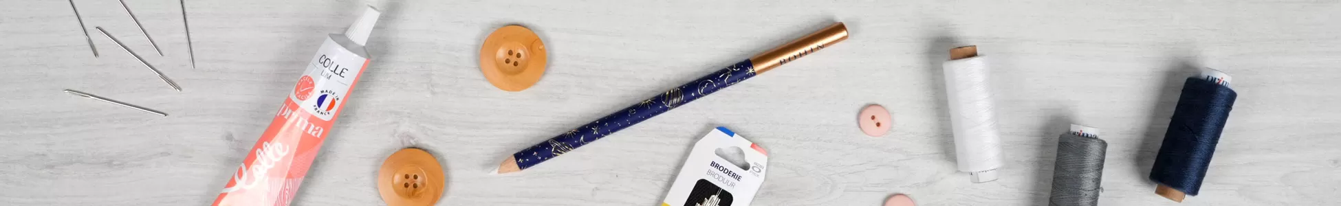 Nous proposons du fabriqué en France sur de nombreuses catégories et en particulier sur des produits phares de l’univers de la mercerie comme les boutons, les aiguilles, les colles ou encore les fils. Vous trouverez ainsi vos indispensables de la couture en made in France et à prix accessible.
