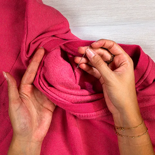 Assurez-vous de bien faire plusieurs passages d’aiguille et de nouer solidement le fil à l’intérieur du vêtement.