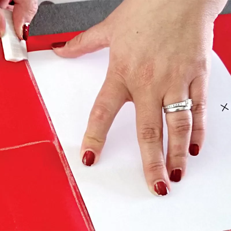 Reproduire les gabarits à la craie sur les tissus (respecter le sens du motif si besoin).