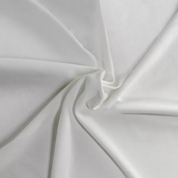 Tissu blanc légèrement élastique, idéal pour la confection de t-shirts.